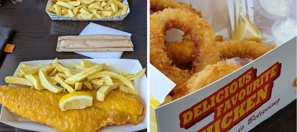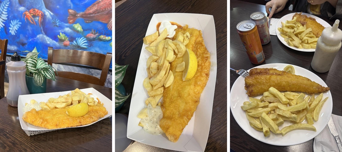 It's very good taste. I order cod and chips, ordered pliace and chips. Crispy and sweet. Curry sause has unique flavor(sour and subtle arabic) 4.75/5
