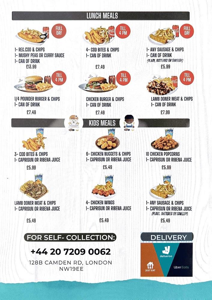 Camden Chippy sits in the bustling Camden area, a beacon for food enthusiasts craving authentic British fish and chips. The location is easily accessible and surrounded by the vibrant energy of Camden Market, known for its eclectic shops and lively atmosphere. Camden itself attracts a diverse crowd—from punk rock lovers to foodies exploring street eats. The eatery occupies a small yet cozy space, allowing diners to experience its welcoming vibe. Whether it’s a lunch break or a relaxed dinner after exploring the colorful streets, Camden Chippy makes it feel like a home away from home. The staff embodies kindness and community, setting the tone for not just a meal but a delightful experience. It has a spacious layout suitable for families, and the charm extends to its numerous no-contact delivery options, making it easy to satisfy those fish and chips cravings.